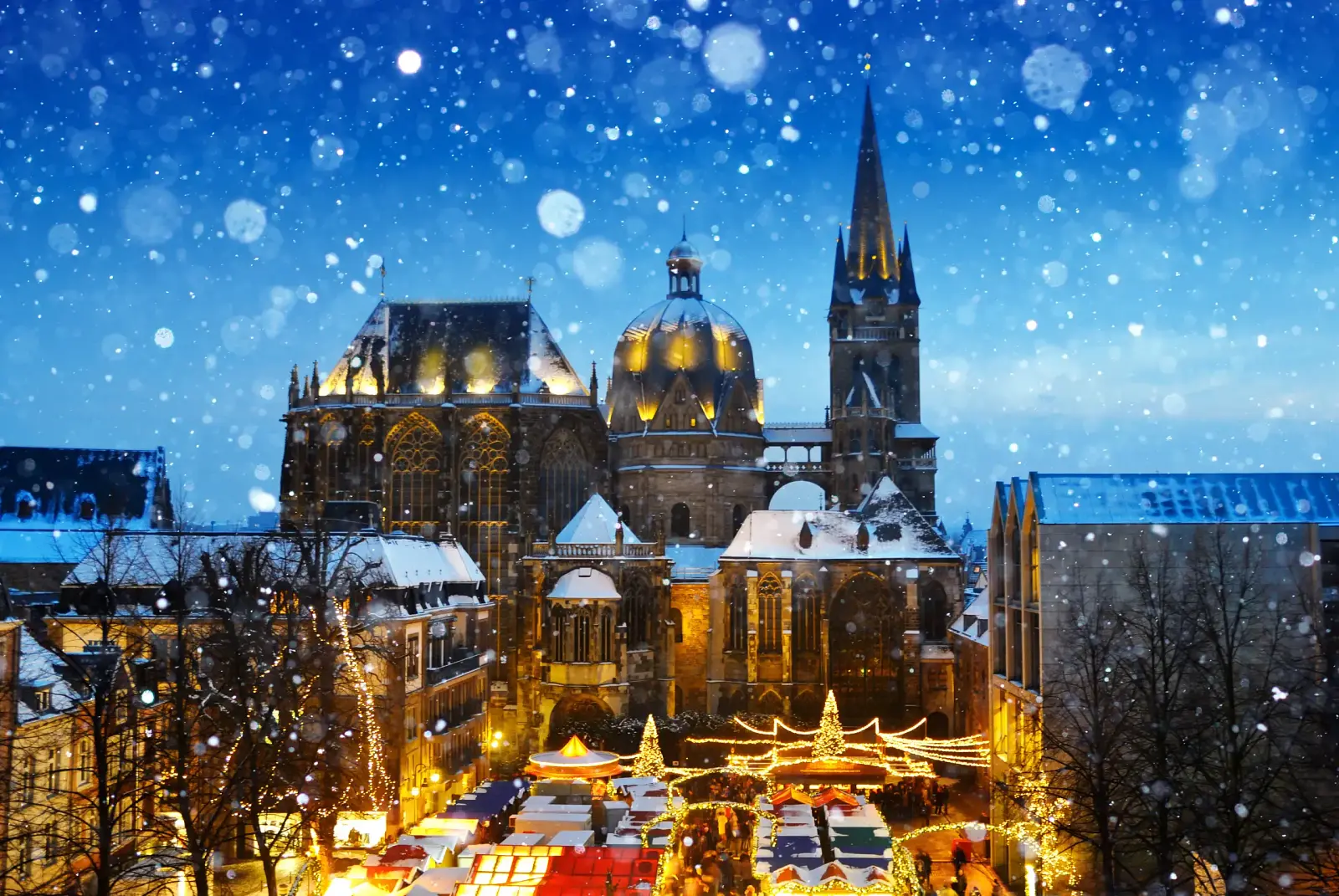 Bezoek de sfeervolle kerstmarkt in Aken. Geniet van fonkelende lichtjes, Duitse lekkernijen en ambachtelijke kraampjes in het hart van de historische stad.